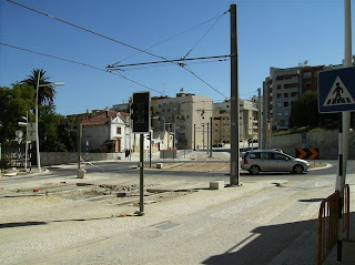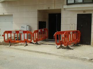 Na ex-rua Lopes de Mendonça, frente aos nºs 2 e 4 depois de terem colocado os blocos enterrados em pedra tipo granito, para delimitar o pseudo espaço canal, esqueceram-se ou concluíram que seria necessário mais um semáforo e vai daí, há que instalá-lo.
