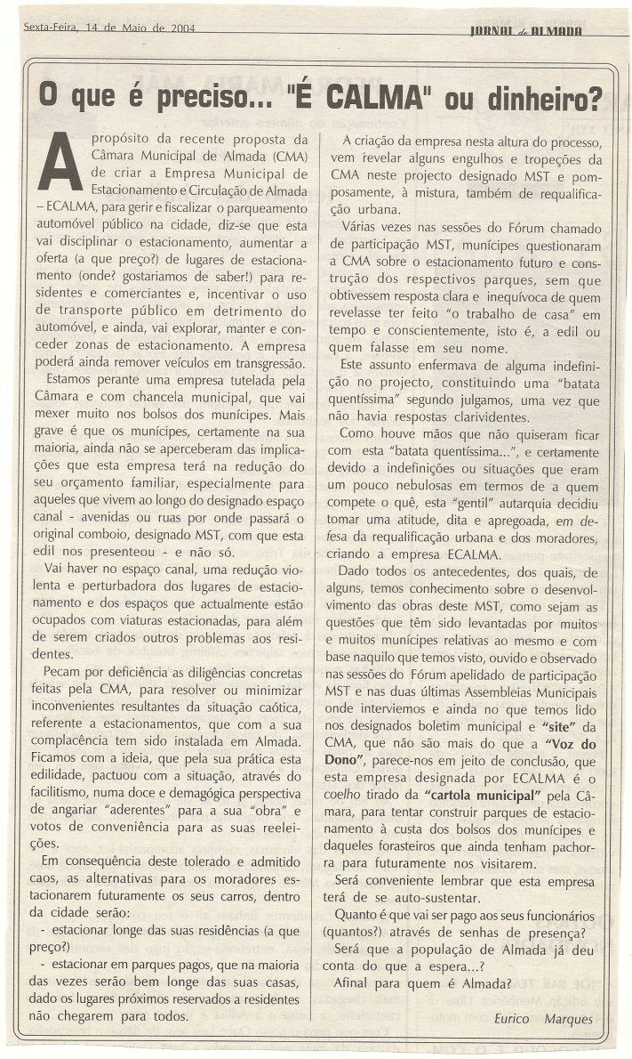 Presentemente o centro de Almada é só comboio da presidente da Câmara, elemento perturbador da vida na cidade e causador material da ruína económica do comércio local, associado a todas as obras realizadas no eixo central de Almada.